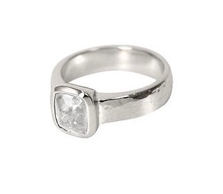 Hand carved setting with beautiful salt and pepper diamond set in a bezel setting. Carefully set and given a delicate hammer finish on the platinum ring. Handmade with all the care and made to last forever.